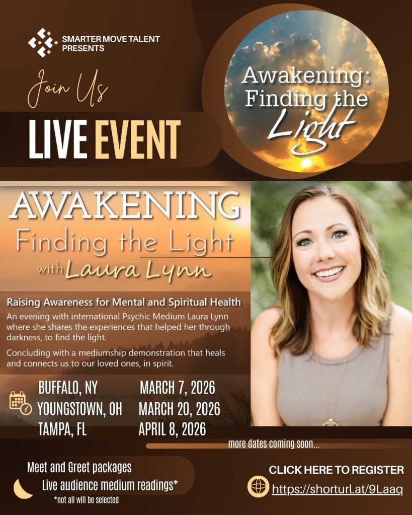 Join author and internationally known Psychic Medium Laura Lynn as she discusses the topics in her new book, “Awakening: Finding the Light”.